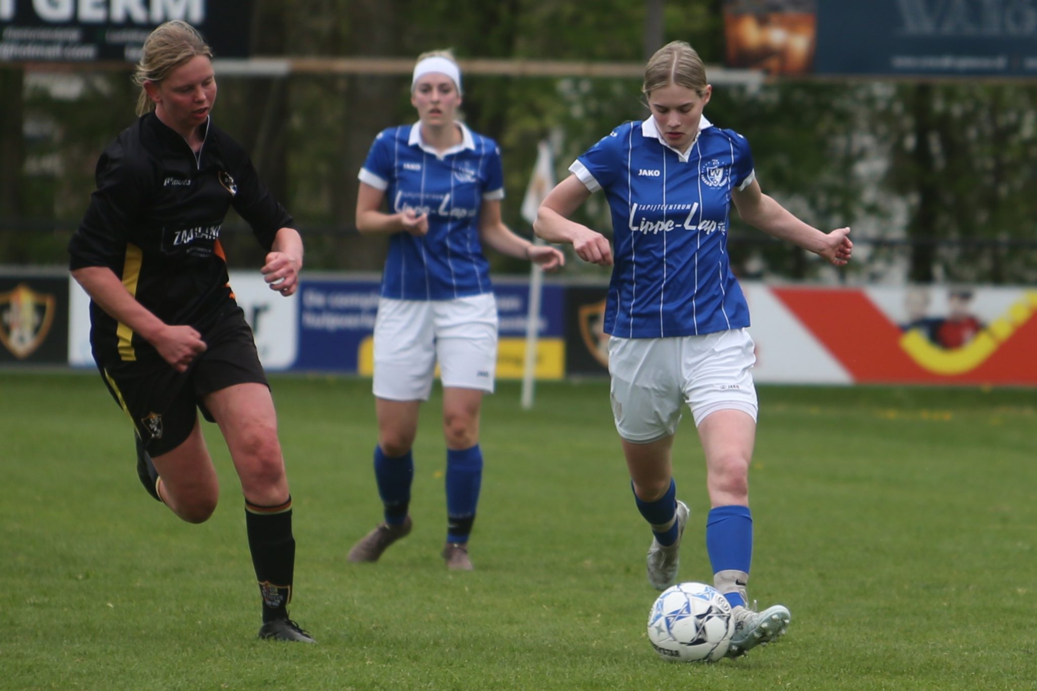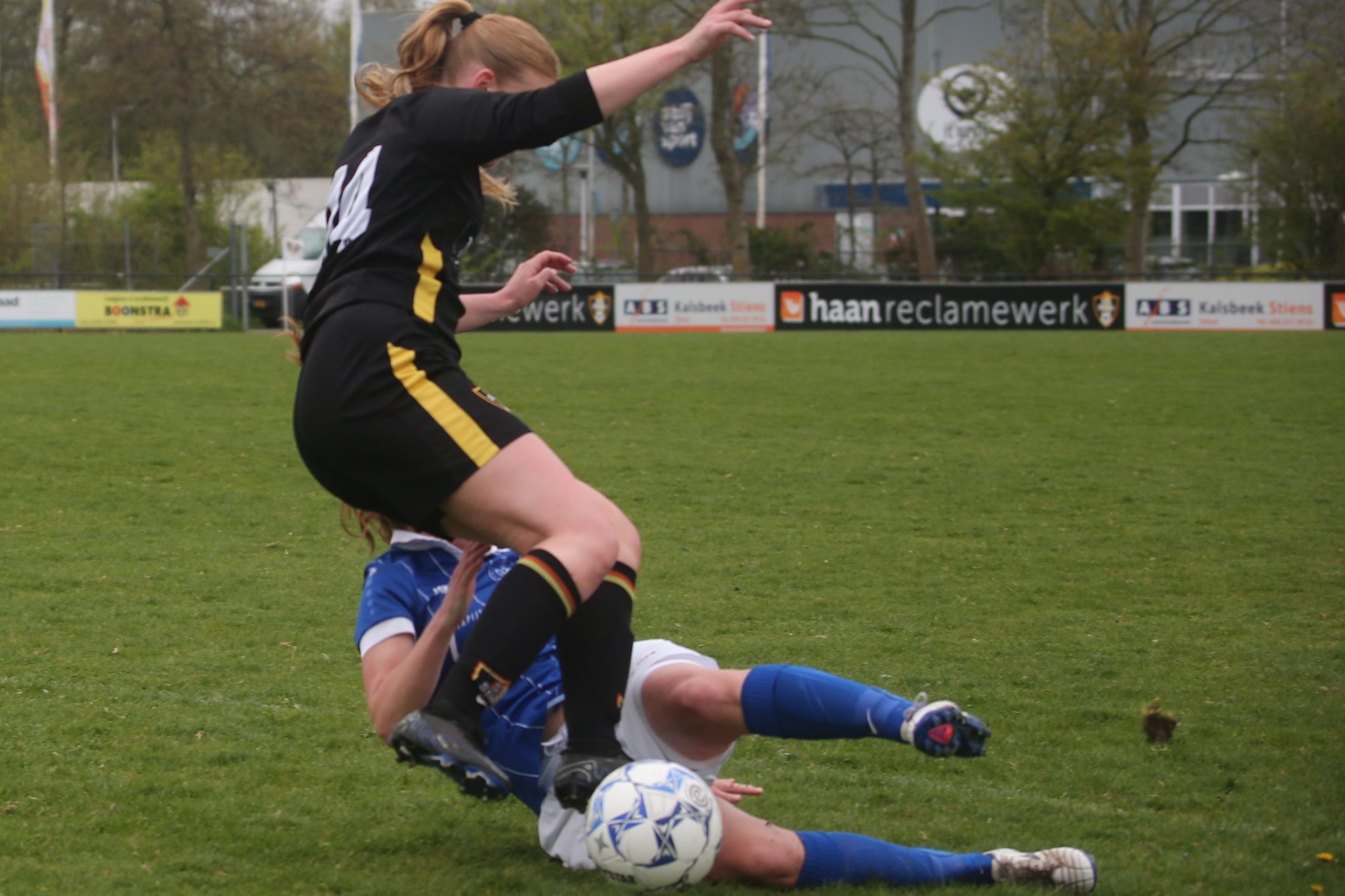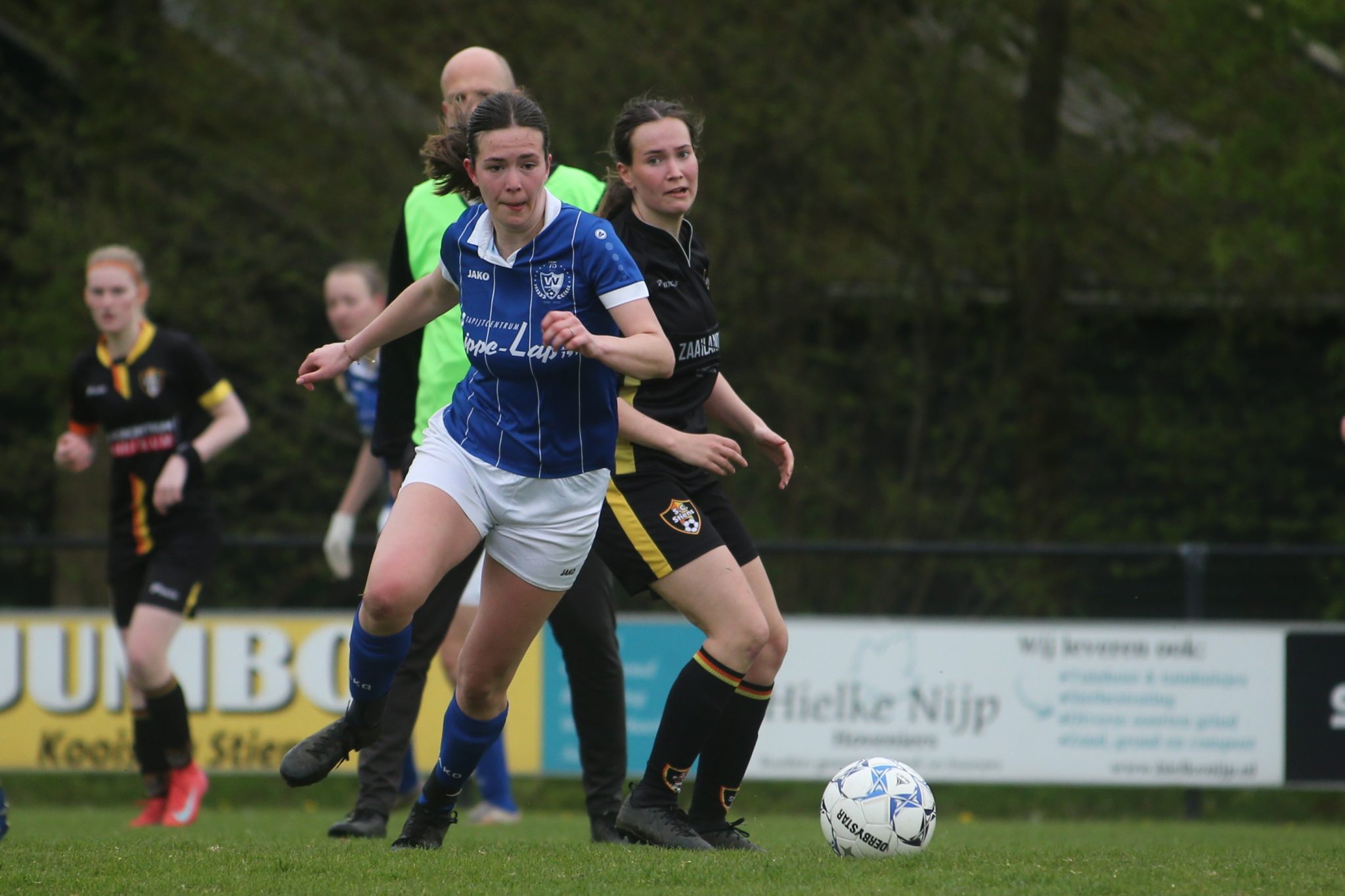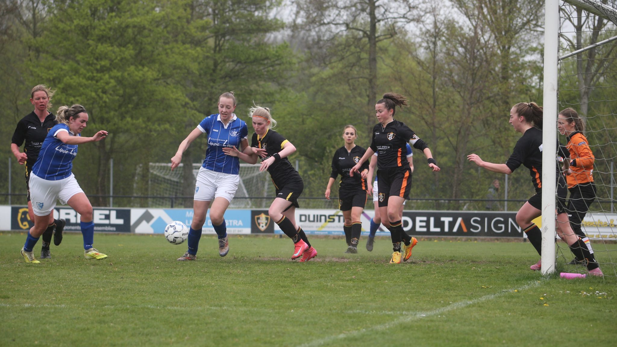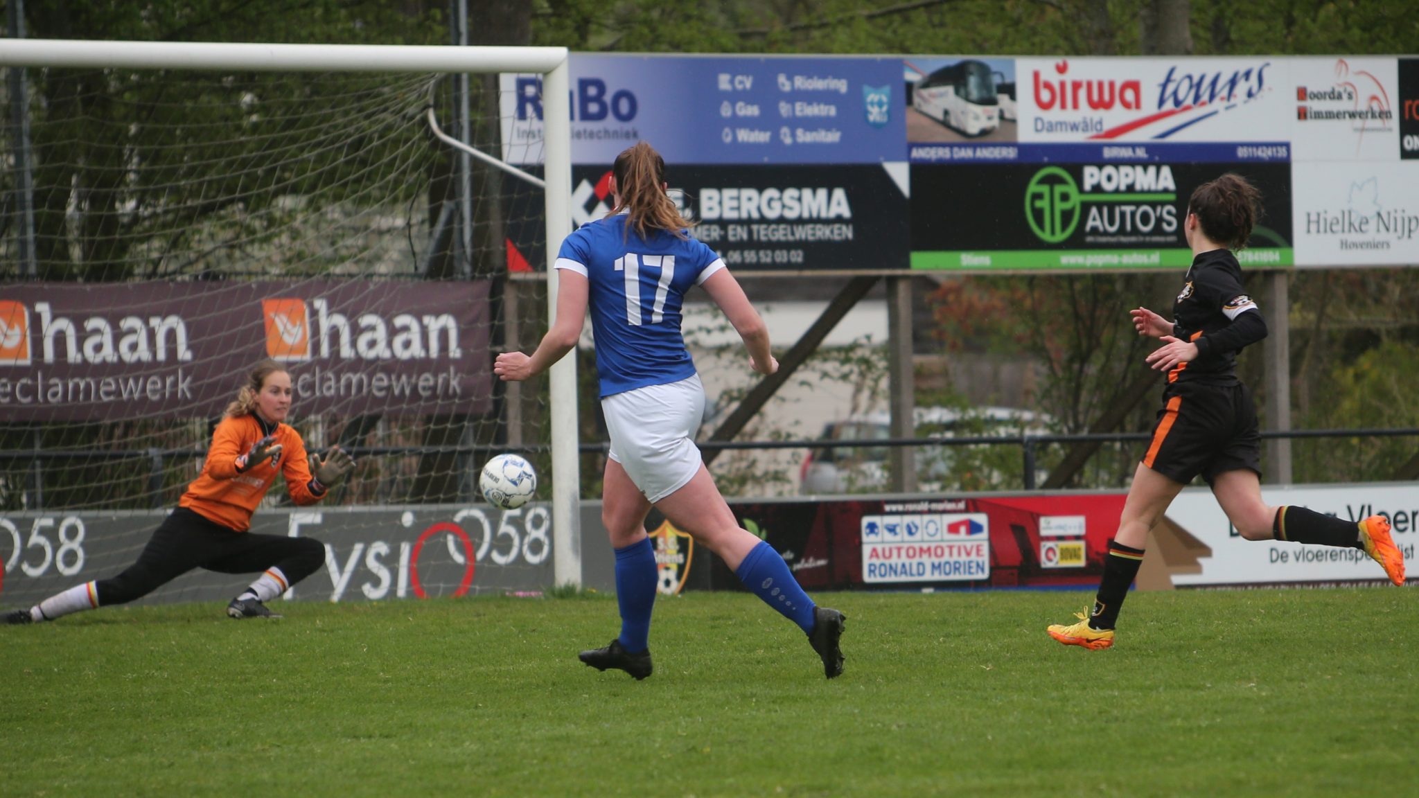 In de 36e minuut was het Esther die net iets eerder bij de bal was dan Nathaly en de 0 – 3 aantekende. En zo gingen de froulju met 0 – 3 de rust in, waarbij Stiens geen enkele kans had gehad.